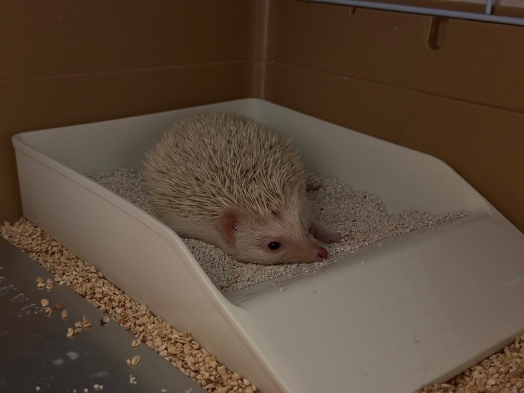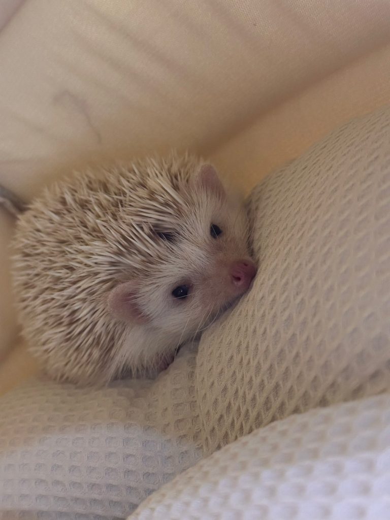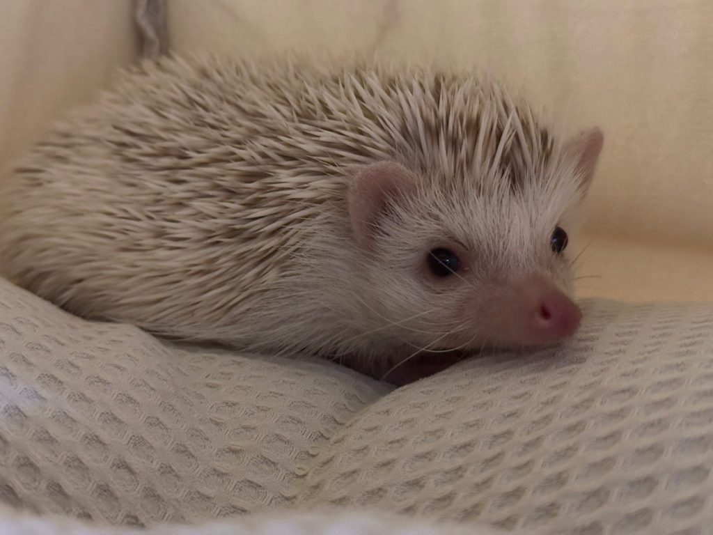 一般的に目にするハリネズミでは珍しいシナモン色で鼻は薄ピンク。